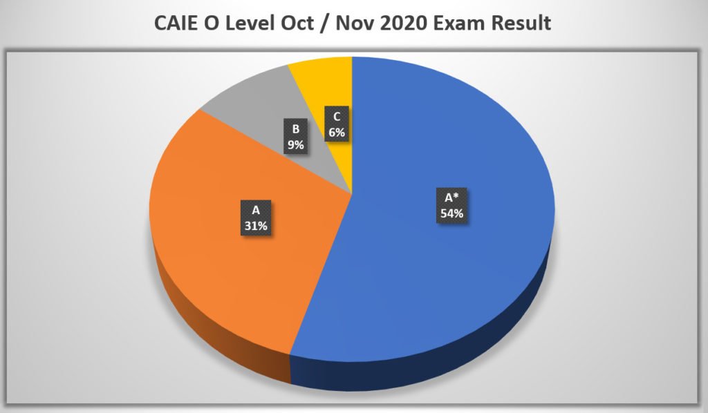 As a Cambridge International School, we offer a result-oriented O Level (IGCSE) program that is (by the Grace of Allah) hard to beat, and definitely worth your attention. We are moving to an O Level program whereby our students shall complete their O Level (IGCSE) by the same time as Matriculation students. This will enable our students and their parents to save an year worth of time and money respectively compared to most other schools which offer O Level / IGCSE. Our O Level program is overseen by a dedicated O Level Coordinator. All praise belongs to Allah, who has given us highly competent teachers with a wealth of experience. Their hardwork has delivered results that stand out, year after year. In 2020, we are once again, humbled by our success in Cambridge Assessment International Examination (CAIE). Our students got 85% A and A* across ten different subjects in O Level October/November 2020 exam series.